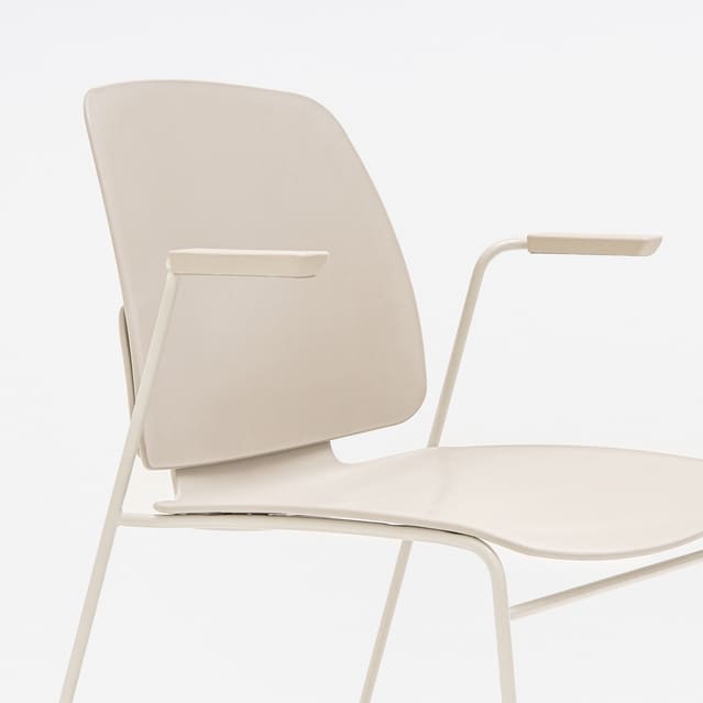 Iespējams salikt līdz desmit krēsliem viens virs otra, kas atvieglo to pārvietošanu un uzglabāšanu.