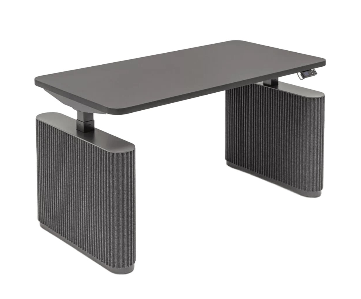 The table frame is equipped with two motors, an anti-collision mechanism and three memory remote controls.